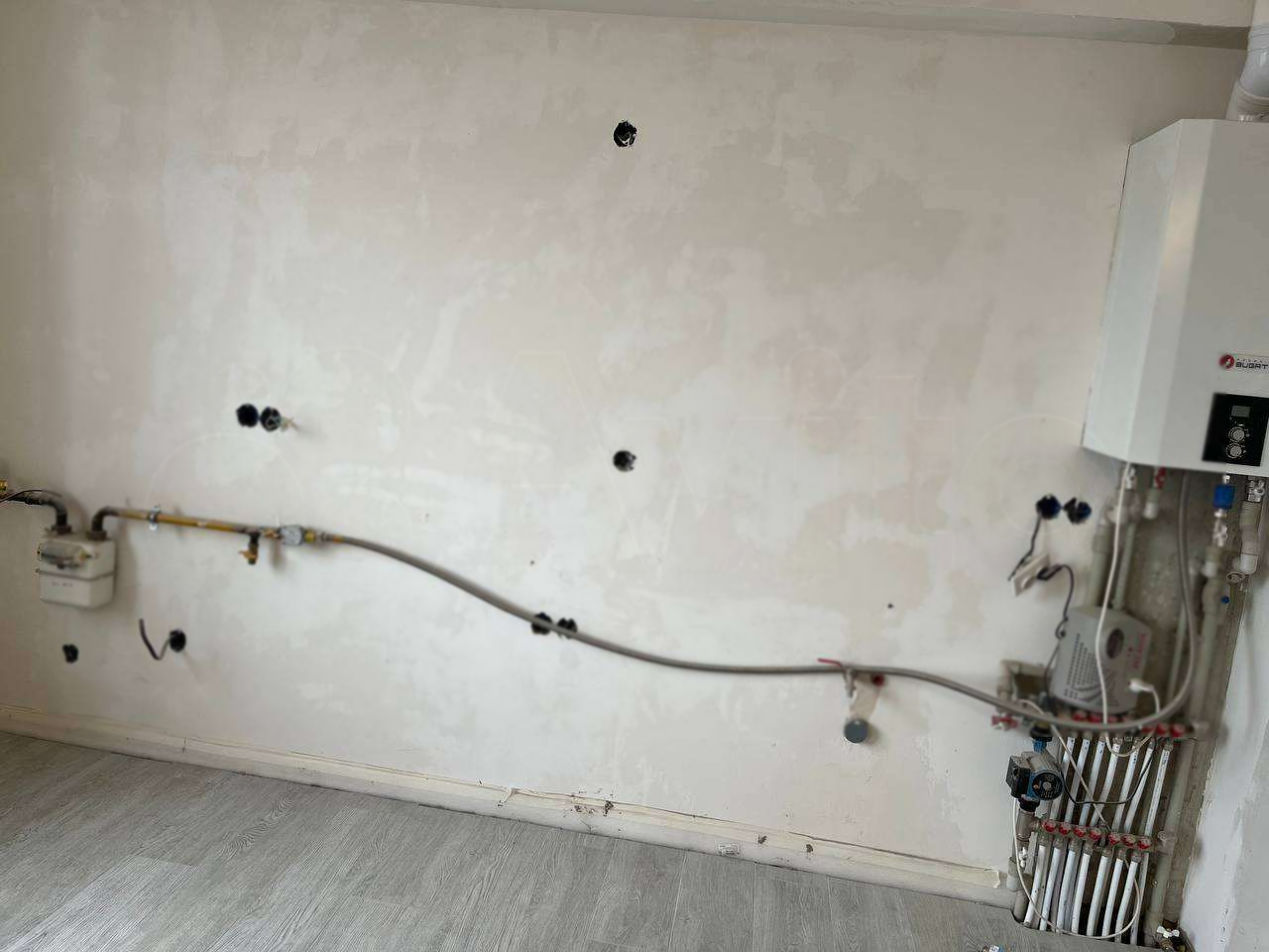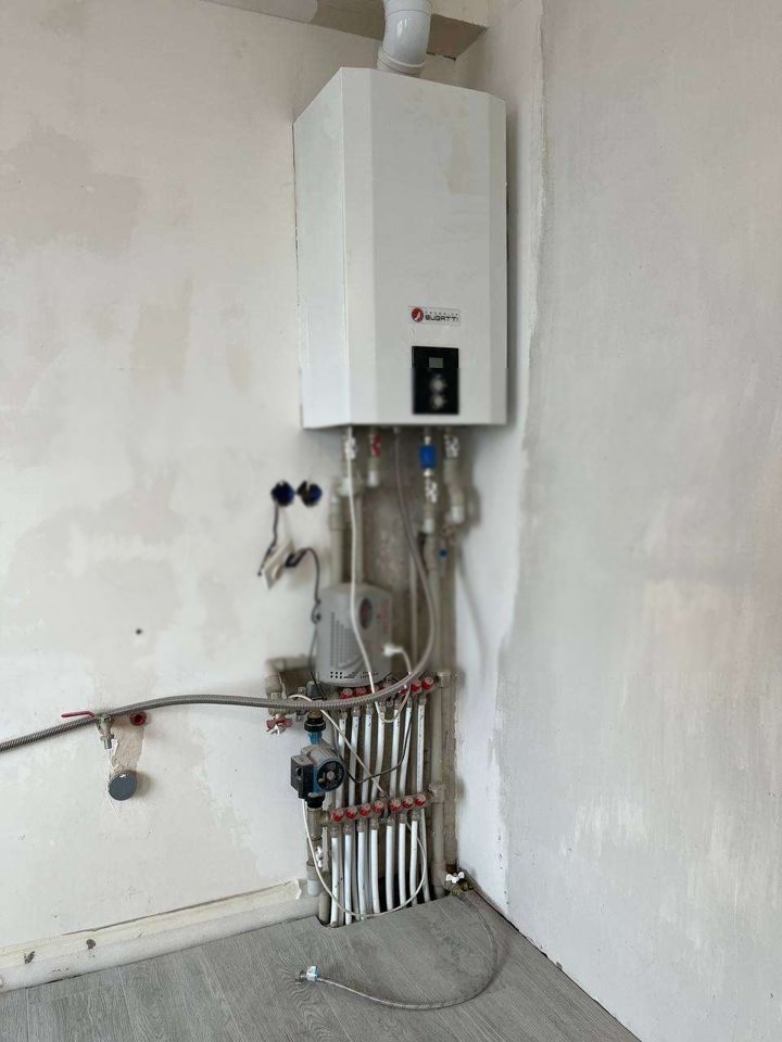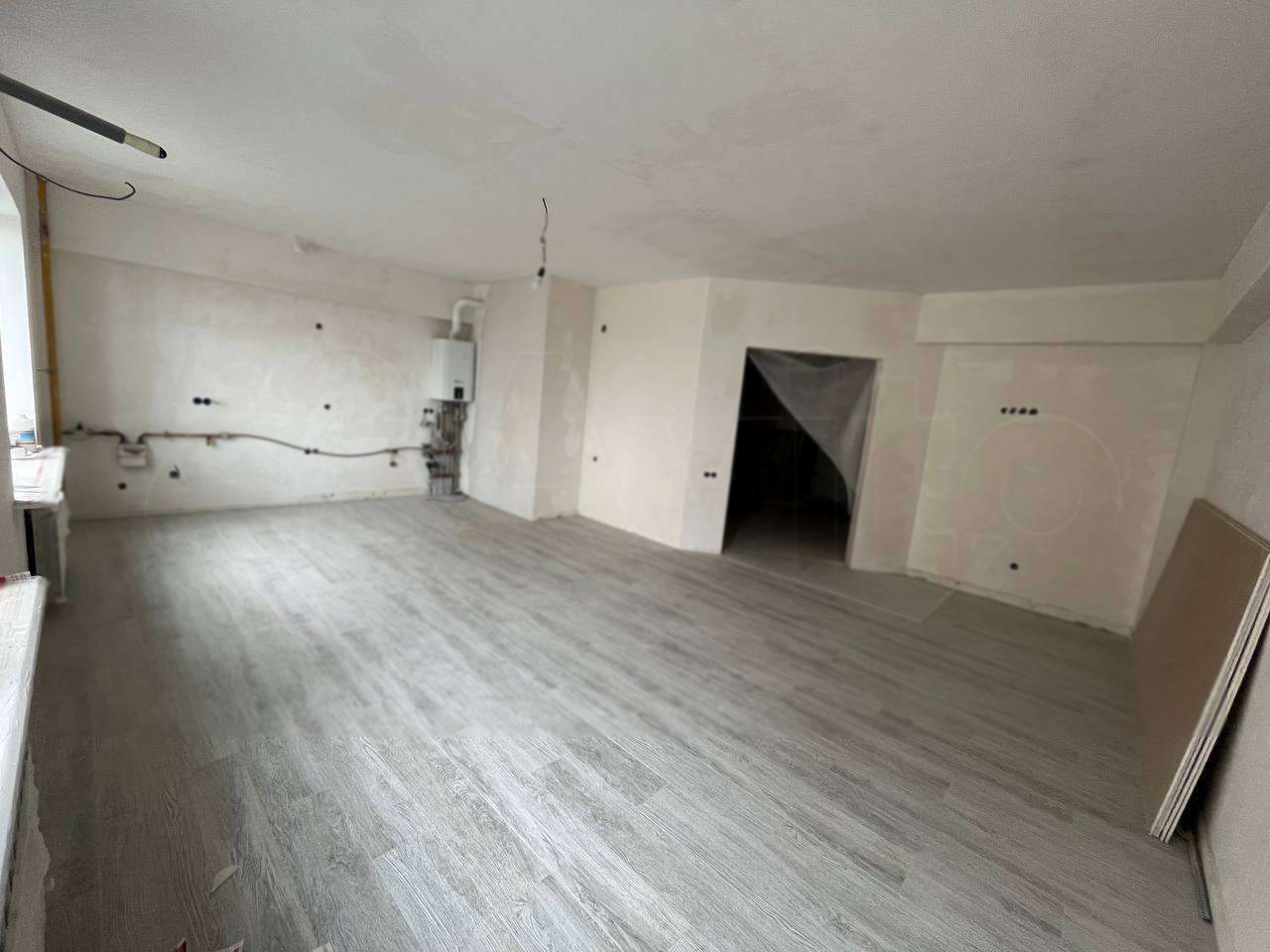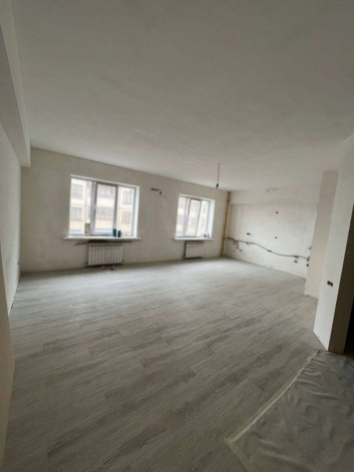 Большая уютная квартира в новостройке. Общая площадь 91,7кв. По плану в квартире 3 комнаты, но на этапе строительства объединили комнату с кухней, и получилась столовая на 36 квадратов. Входная дверь новая, не от застройщика. По ремонту сделано следующее: теплый пол в столовой, прихожей и санузле, стоит кател двухконтурный фирмы Бугатти, мощностью 24квт; стены готовы под поклейку обоев; На полу в столовой и прихожей приклеены плитки керамогранит. В каждой комнате проложены закладки под кондиционер. Полы в спальных выравнены под ламинат, чтоб переход на плитку получился ровный. В туалете установлена инсталляция, и выведены трубы под полотенцесушитель, а так же под стиральную машину. По электричеству: на каждый кондиционер выведены автоматы, так же в столовой стена под рабочую зону кухни выведена на отдельный автомат, и котел подключен к отдельному автомату.